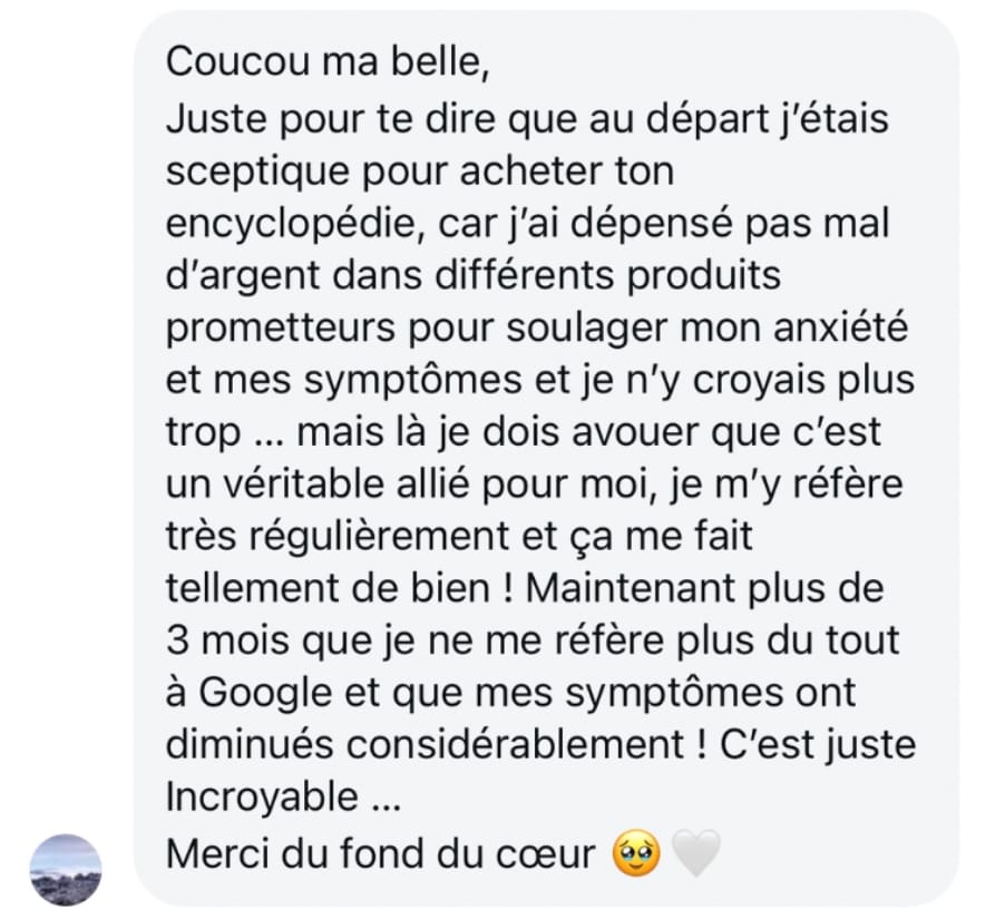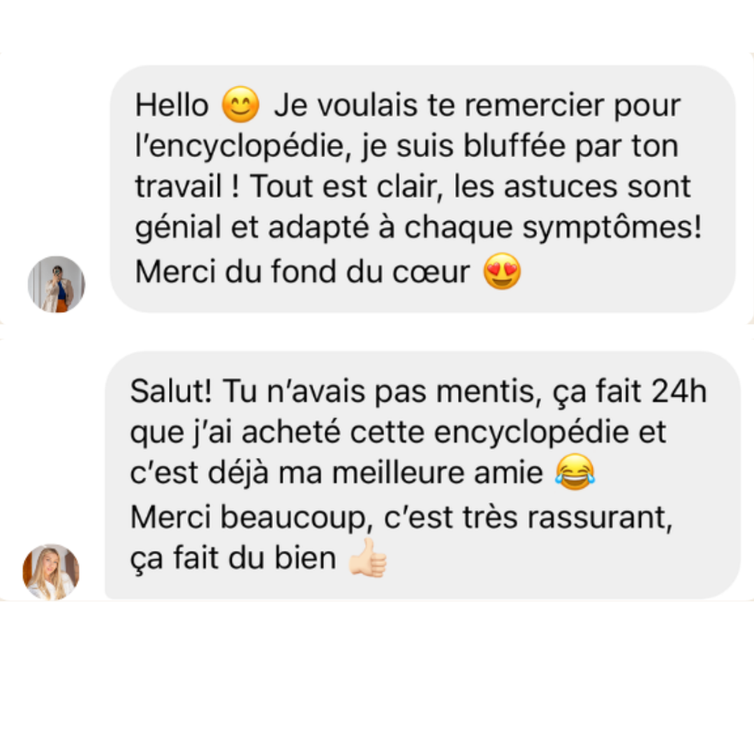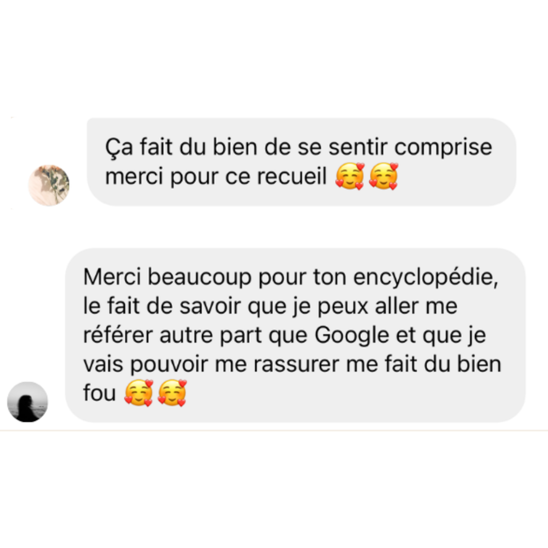 Tu veux soulager tes symptômes et tu as besoin d'un support clair et rassurant que tu pourras consulter quand tu veux.